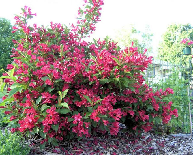 Вейгела Блуминг гулзор ёки тўсиқ учун идеал.
